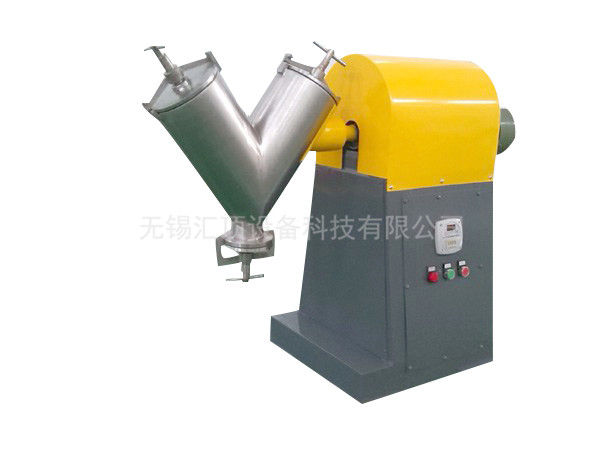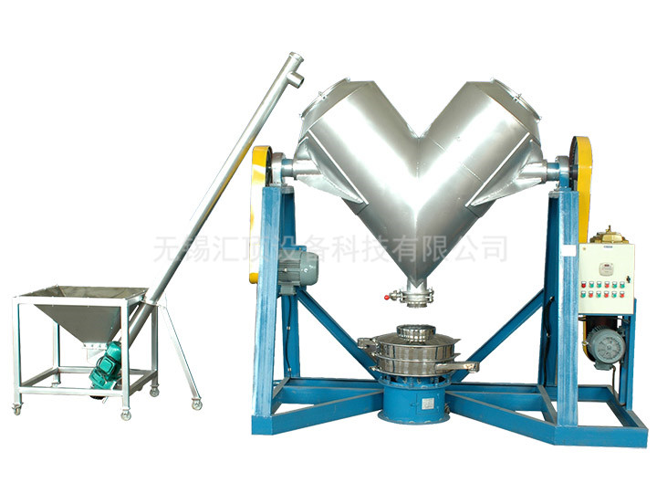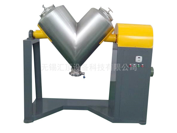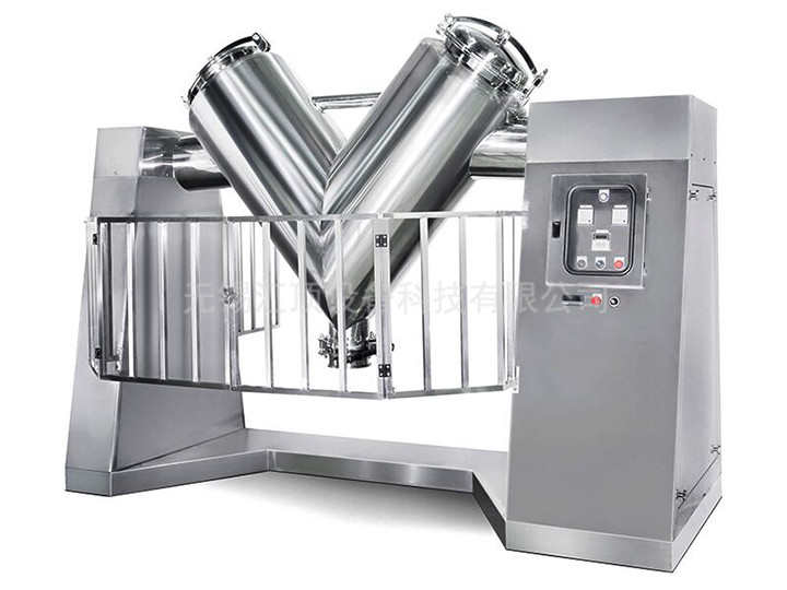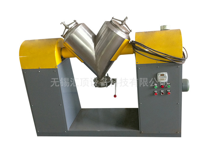 混料筒一般用不銹鋼制作,內(nèi)外壁拋光,結(jié)構(gòu)設(shè)計上保證無積料死角,清洗方便徹底。筒體上部有兩個進料口,下部有一個出料口。桶體可用手任意轉(zhuǎn)動,以便于出料。