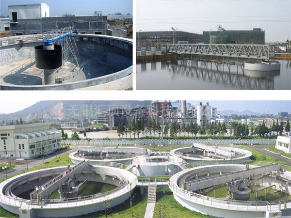 中心傳動刮吸泥機采用中心傳動,污水從進水管流入導流筒擴散后,均勻的向周邊呈輻射狀流出,呈懸浮狀的污泥經(jīng)沉淀后沉積于池底,驅(qū)動裝置帶動中心豎架旋轉(zhuǎn),并帶動刮臂及刮泥板轉(zhuǎn)動,刮泥板將污泥刮集后由吸泥管靠池內(nèi)靜水壓抽吸至中心泥缸,再通過中心排泥管排出池外,水面上的浮渣通過旋轉(zhuǎn)撇渣裝置導入排渣斗內(nèi)排出池外;而上清液則通過三角形出水堰板溢入出水槽內(nèi)排出。我公司將會針對用戶不同工藝控制條件要求,做相應的配套調(diào)整設計,以確保泥漿沉降分離和洗滌效果,減少浪費,節(jié)約投資成本。